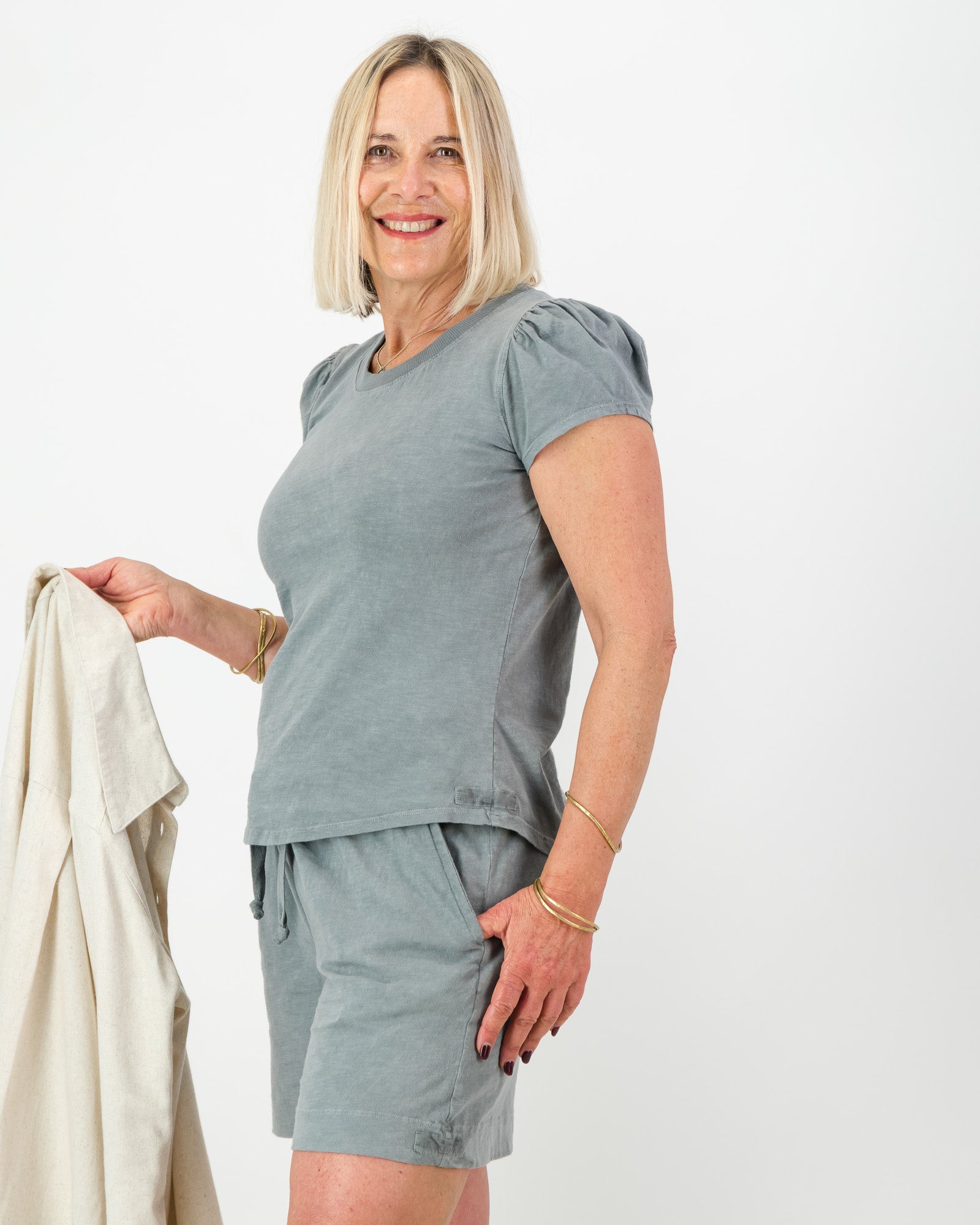 Made from 100% natural cotton, our Puff sleeve T-shirt is the ultimate combination of style, comfort, and sustainability. The breathable and absorbent fabric is perfect for summer days, and is so versatile and can be worn with many different bottoms. Plus, it's incredibly soft to the touch, with the gorgeous puff sleeves, adding a pretty feminine vibe to this wardrobe staple T-Shirt. Complete the look with our matching SHORTS or our famous Comfy Pants.