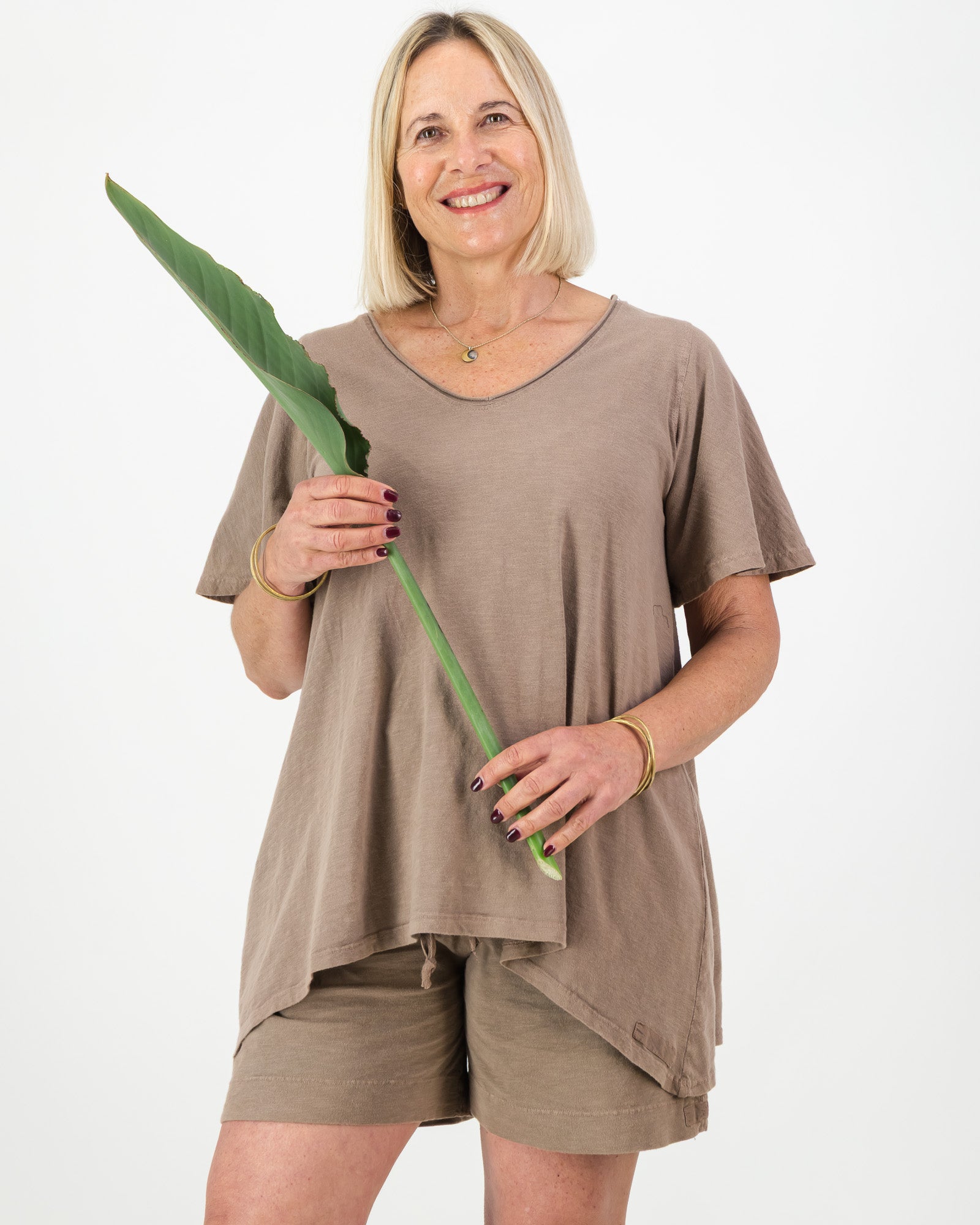 Versatile and easy to wear, the Talia pairs seamlessly with a variety of bottoms. Style it with our matching Cotton Shorts — in a coordinated or contrasting shade — for a chic set, or layer it over Cotton Leggings for a relaxed yet put-together outfit.